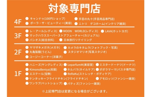 期間中、対象専門店でのお買い上げ¥1,000(税込)以上の